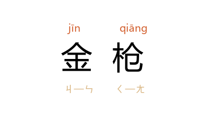 引唐 李咸用 《边城听角》诗:“戍楼鸣画角,寒露滴金枪。”《水浒传》第五六回:“这 徐寧 的金枪法、钩鎌枪法,端的是天下独步。”