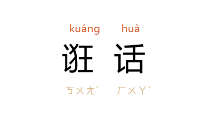 引清 陈天华 《警世钟》:“这个消息, 日本 报章也不肯载,是从 日本 外务省的官吏,政党的大员,学堂的教习,私自探听得的,极真极确,并不是誑话。”杨沫 《青春之歌》第二部第十三章:“‘大娘’, 道静 又在编着不得已的诳话:‘这上面净是骂我害我的话,我要仔细把它念一下,以后好跟他打官司。’”