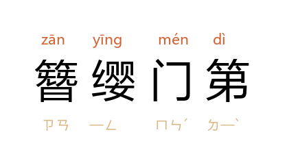 引《儿女英雄传》第一回:“这 安老爷 家,通共算起来,内外上下,也有二三十口人,虽然算不得簪缨门第,鐘鼎人家,却倒过得亲亲热热,安安静静。”欧阳予倩 《馒头庵》第二场:“即便他恩情金石样,他家是簪缨门第也不相当。”