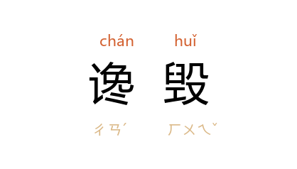 引《韩诗外传》卷九:“修身不可不慎也。嗜慾侈则行亏,谗毁行则害成。”唐 高适 《宋中送族侄式颜》诗:“当时有勋业,末路遭谗毁。”郭沫若 《中国史稿》第三编第一章第四节:“但因受到 楚王 近臣的嫉视和谗毁,被 楚王 疏远,并一再遭到放逐。”