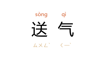 ⒈ 语音学上发塞音或塞擦音时,在发音器官除阻后,吐出强的气流,称为「送气」。