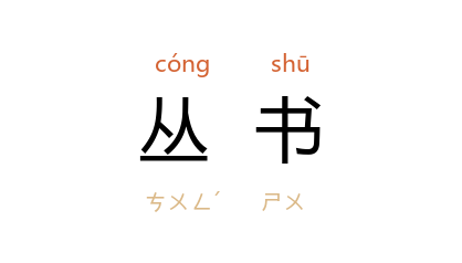 ⒊ 根据一定目的和使用对象,选择若干种书编为一套,在一个总名称下刊印。有综合性的,也有专科性或专题性的。 中国 编丛书,始自 宋 代,盛于 明 清。自 元 明 至近代,所刻近三千种。