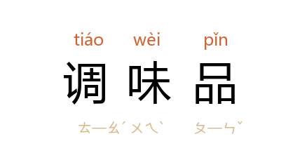 ⒈ 调理食物滋味的物料。如酱油、醋、味精、糖、盐等。