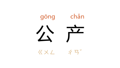 引《清史稿·食货志一》:“雍正 初,清理旗地,令颁帑赎回。凡不自首与私授受者,胥入官为公产。”严复 《辟韩》:“西洋之言治者,曰:国者斯民之公产也。王侯将相者,通国之公僕隶也。”