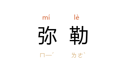 ⒈ 梵语Maitreya音译,意译“慈氏”。著名的未来佛。我国的 弥勒 塑像胸腹坦露,面带笑容。传说 五代 时 布袋和尚 是其化身。
