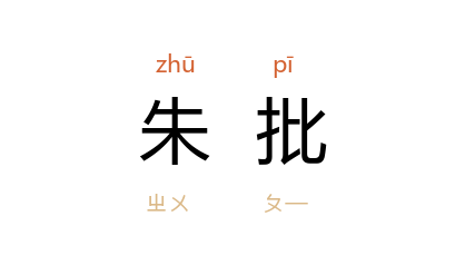 ⒈ 朱批:用朱笔写的批语。 清 代,皇帝用朱笔在奏章上所作的批示。