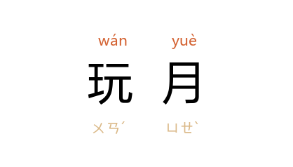 引唐 韦应物 《月下会徐十一草堂》诗:“暂輟观书夜,还题玩月诗。”金 元好问 《满庭芳》词:“絳闕凌风,瑶池玩月,众仙侍立清班。”朱静宜 《中秋无月感赋》诗:“今年玩月 长沙城,置酒高楼待明月。”