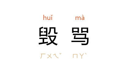 引元 关汉卿 《绯衣梦》第三折:“那厮可便舒着腿脡,扠着门桯,精唇口毁駡不住声。”《水浒传》第十五回:“叵耐村夫无理,毁駡贫道,因此性发。”《二刻拍案惊奇》卷十八:“只含糊回他道:‘妻子不孝,毁駡了公婆,惧罪而死。’”