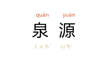⒈ 水的源头。唐·祖咏〈田家即事〉诗:「攀条憩林麓,引水开泉源。」也作「泉原」。