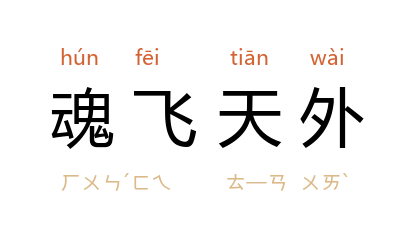 引《三国演义·第七回》:「绍惊得魂飞天外,手中宝刀坠于马下。」《儒林外史·第三八回》:「『老师父,你这一打酒去,没有活的命了!』老和尚听了,魂飞天外。」