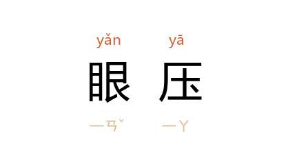 ⒈ 眼球内部液体对周围组织的压力。正常眼压一般在十三至二十八公厘水银柱之间,过高或过低都会影响眼球机能。如青光眼病人的眼压就常高于正常值。