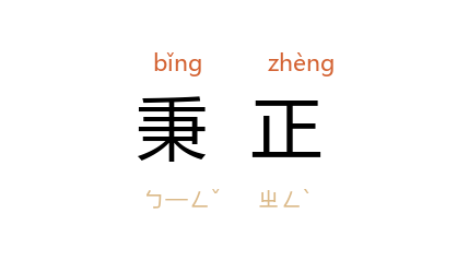 引《明史·王家屏传》:“每议事,秉正持法,不亢不随。”清 王士禛 《池北偶谈·谈献一·葛端肃公家训》:“大凡人能清约,即能秉正。”中国近代史资料丛刊《太平天囯·天父下凡诏书二》:“各各总要真心秉正,同辅朝纲。”