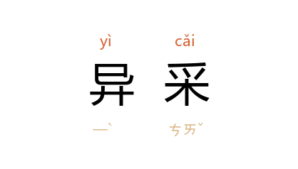 ⒉ 夺目的光彩。或以比喻非凡的成就。也作「异彩」。