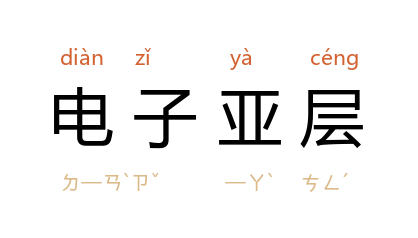 ⒈ 指原子核外的同一电子层中,根据电子能量的差异和电子云形状的不同而分成的电子层。分别用s、p、d、f等符号表示。k电子层只有一个亚层(即s亚层),l电子层有两个亚层(即s亚层和p亚层),m电子层有三个亚层(即s、p、d亚层)等。