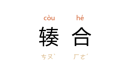 引宋 陈亮 《乙巳春与朱元晦秘书书》之一:“此论正在於毫釐分寸处较得失,而心之本体实非鬭飣輳合以成。”《水浒传》第六五回:“索超 本是天罡星之数,自然輳合,降了 宋江。”清 叶廷琯 《吹网录·石林诗话》:“盖古人之诗,非如今人牵强輳合。”