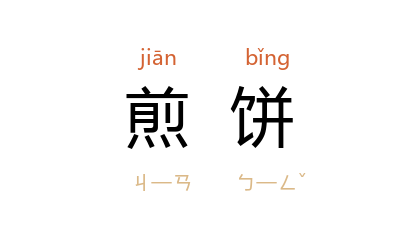 ⒈ 用面粉与水调成稠糊状,在平底锅中摊成薄饼,煎而食之,称为「煎饼」。
