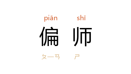 ⒉ 低级军官名。 清 末 濮振声 在 浙江 建德 一带组织反 清 独立军,其基层编制以五人为伍,有伍长,五伍为偏,有偏师。参阅 陶成章 《浙案纪略·濮振声传》。