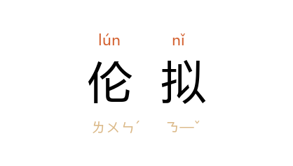 引唐 元稹 《授韩皋尚书左仆射制》:“日者銓覈羣才,兼荣揆务,颇烦伦拟,有异优崇。”五代 王定保 《唐摭言·慈恩寺题名游赏赋咏杂记》:“其年三月中,宴於 曲江亭,供帐之盛,罕有伦拟。”宋 岳珂 《桯史·宣和御画》:“卢溪、与之,虽非可伦拟者,第详玩诗语,似不若前作简而有味云。”