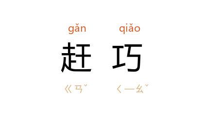 引老舍 《赵子曰》第一:“现在赶巧了在 隆福寺 的旧书摊上,还可以花三个铜子买一本 赵 著的《小脚集》。”秦兆阳 《东西李庄的故事》:“赶巧这天 李庄 正是个大庙会,高台大戏非常热闹。”