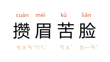 引《官场现形记·第一一回》:「禁不住邹太爷攒眉苦脸,求他多当两个,才算当了四百五十钱。」