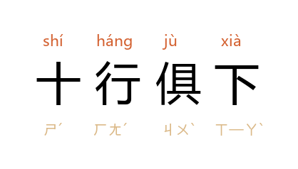 ⒈ 形容看书很快(见于《梁书·简文帝纪》:“读书十行俱下”)