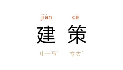引汉 班固 《西都赋》:“奉春 建策, 留侯 演成。”《后汉书·西南夷传·滇》:“诸夷反叛……太尉掾 巴郡 李顒 建策讨伐。”隋 李德林 《<霸朝集>序》:“运筹建策,通幽达冥,从命者获安,违命者悉祸。”《资治通鉴·唐高祖武德元年》:“黄门侍郎 裴矩 知必将有乱,虽廝役皆厚遇之,又建策为驍果娶妇。”