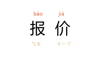 ⒉ 售货者对采购者所提的货品价格,称为「报价」。可做为比价、议价的依据。