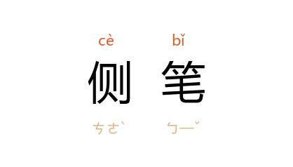 ⒈ 书法上称用笔取侧势为「侧笔」。
