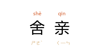 引《醒世恒言·钱秀才错占凤凰俦》:“有几个老学,看了舍亲的文字,都许他京解之才。”《儒林外史》第十九回:“今早是舍亲小生日,我在那里祝寿。”《二十年目睹之怪现状》第二七回:“舍亲被他缠不过,给了他六十两银子。”