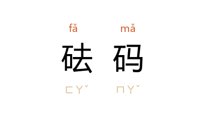 ⒈  以天平称物时,用来计算重量的标准器,用铜铅等金属制成,有轻重大小的差别。也作「法马」、「法码」。