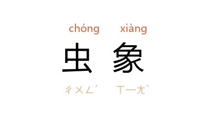 ⒈ 传说中的水怪。《楚辞·远游》:“玄螭虫象并出进兮,形蟉虬而逶蛇。”王逸注:“象,罔象也。”朱熹集注:“象,《国语》所谓'水之怪龙罔象'也。”胡文英注:“虫象,罔象也。”一说“象”为“豸”字之误。闻一多新义:“象,疑当为豸,字之误也,豸,……与象形近,故误为象。《说文》曰'豸,兽长脊,行豸豸然。'《系传》曰'豸豸,背隆长貌。''玄螭虫豸并出进兮,形蟉虬而逶蛇',盖指鱼龙漫衍之戏,《西京赋》所谓'巨兽巨寻,是为曼延'是也。”