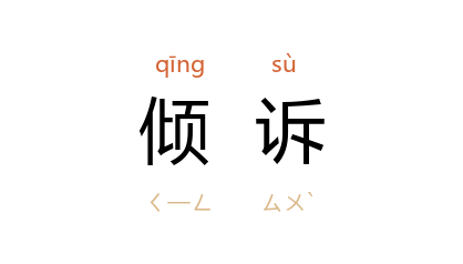 引巴金 《家》二四:“你想,我的痛苦,又向哪个倾诉?”徐迟 《祁连山下》:“他一件件说起来,几乎倾诉了一切。”