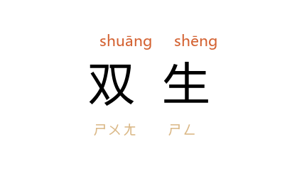 引《公羊传·隐公元年》“立子以贵不以长” 汉 何休 注:“其双生也,质家据见,立先生;文家据本意,立后生。”《南齐书·五行志》:“永明 五年, 吴兴 东迁 民 吴休 之家女人双生二儿,胷以下齐以上合。”《儿女英雄传》第十三回:“不但像是个同胞姊妹,并且像是双生姊妹。”