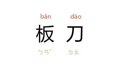 引《水浒传》第三七回:“那艄公便去艎板底下摸出那把明晃晃板刀来。”鲁迅 《华盖集续编·马上日记》:“车边上挂着兵,有的背着扎红绸的板刀。”