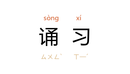 ⒈ 诵读而熟习,也指诵读复习。
