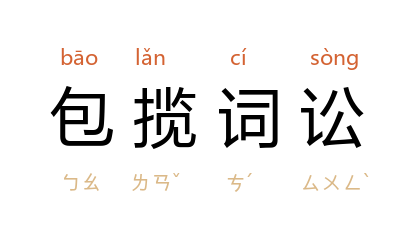 ⒈ 词讼:诉论。包打官司,从中敲诈勒索。