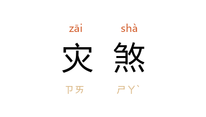 ⒈ 亦作“灾杀”。亦作“灾煞”。星命术语。三合局中五行的胎神。如子、辰、申年合为水局,则以午火为胎神。因水能克火,故谓凡逢灾煞者,多有灾病疾厄之事。参阅 清 允禄 等《协纪辨方书·义例一·灾煞》。参见“三合”。