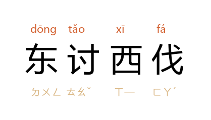 ⒈ 四处出战征伐。也作「东讨西征@@@东征西讨」。