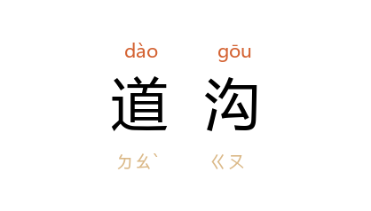 引孙犁 《白洋淀纪事·小胜儿》:“在五月麦黄的日子, 冀中平原 上,打的天昏地暗,打的树木脱枝落叶,道沟里的鲜血滴滴。”峻青 《黎明的河边》三:“雨后的蛤蟆,张开了大喉咙,咕咕呱呱地直叫,道沟里,庄稼地里,有流水的哗啦哗啦声。”