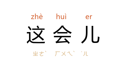 例如:「你才刚回来,这会儿又要上那儿去呢?」、「这会儿恐怕火车早开走了。」