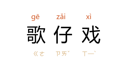 ⒈ 一种民间戏曲。流行于闽、台地区。明末闽南的锦歌、采茶曲、车鼓弄等民间艺术传入台湾后,吸收本地的民歌、说唱,并受京戏、四平戏的影响,逐渐发展成为独立戏种。初期常在空地演出,称为「落地扫」。主要曲调为七字调、大调、哭调、杂念调等。伴奏乐器以壳仔弦、大广弦、月琴、台湾笛为主,伴以锣鼓等打击乐器。今日在大陆闽南龙溪、芗江一带,流行的歌仔戏,是由台湾传过去的。