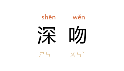 ⒈ 唇、舌、齿相接触的长时间或有节奏的互咂舌头的亲吻。