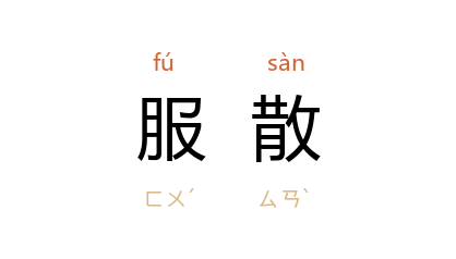 引晋 王羲之 《与人书》:“以大近不復服散,当将陡釐也。此药为益,如君告。”南朝 宋 刘义庆 《世说新语·任诞》:“桓南郡 被召作太子洗马,船泊 荻渚。王大 服散后已小醉,往看 桓,桓 为设酒。”唐 陆龟蒙 《奉和袭美怀华阳润卿博士》之二:“谈玄麈尾抛云底,服散龙胎在酒中。”