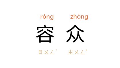 引《论语·子张》:“君子尊贤而容众,嘉善而矜不能。我之大贤与,於人何所不容?”《礼记·儒行》:“举贤而容众,毁方而瓦合,其宽裕有如此者。”汉 蔡邕 《正交论》:“商 也宽,故告之以拒人; 师 也褊,故训之以容众。”《后汉书·班固传》:“﹝ 固 ﹞性宽和容众,不以才能高人,诸儒以此慕之。”