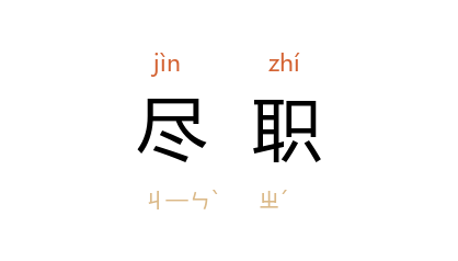 引明 吴承恩 《潘公神道碑》:“首尾职諫八年,矢志尽职。”清 昭槤 《啸亭杂录·盛司寇》:“臣为司寇,尽职而已。”柳青 《铜墙铁壁》第十三章:“疤虎 像一个尽职的哨兵,坐在他的背包上,专心一意监视着南山的敌人。”