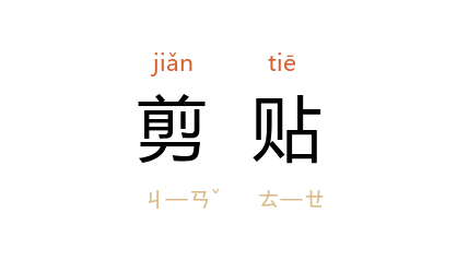 ⒊ 手工工艺。用彩纸剪成文字或图案等,贴在纸或其他东西上。