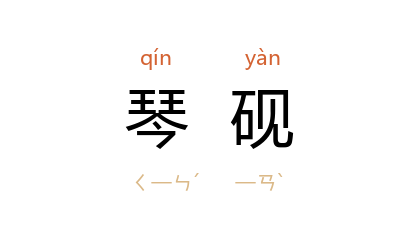 引清 纪昀 《阅微草堂笔记·槐西杂志四》:“张桂巖 自 扬州 还,携一琴砚见赠,斑驳剥落,古色黝然。”