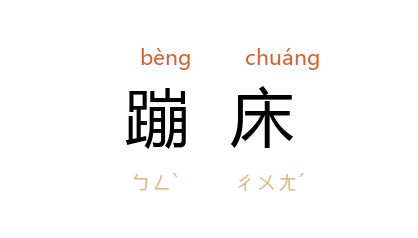 张恨水 《五子登科》第十六回:“他坐在床沿上,两手将蹦床按了两下,身子跟着颠了几颠。”