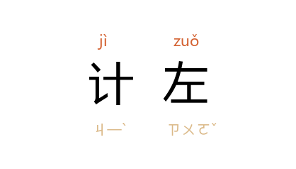 引《明史·海瑞传》:“用人而必欲其唯言莫违,此陛下之计左也。”清 陈维崧 《哨遍·曾庭闻至》词:“近日前辈,何其计左。东风下第渡 滹沱,笑 洛阳 黑貂裘破。”续范亭 《读鲁迅书简有感》诗:“荆軻 计左 屈原 小, 鲁迅 文章百万兵。”