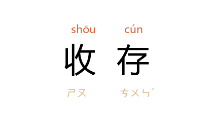 引清 黄六鸿 《福惠全书·莅任·缴凭》:“其凭须细加检点,仍照式誊写一张收存。”邹鲁 《中国同盟会》:“凡各地会员盟书,均须交至本会收存。”冰心 《南归》:“﹝胎发﹞是母亲珍重的用红线束起收存起来的。”